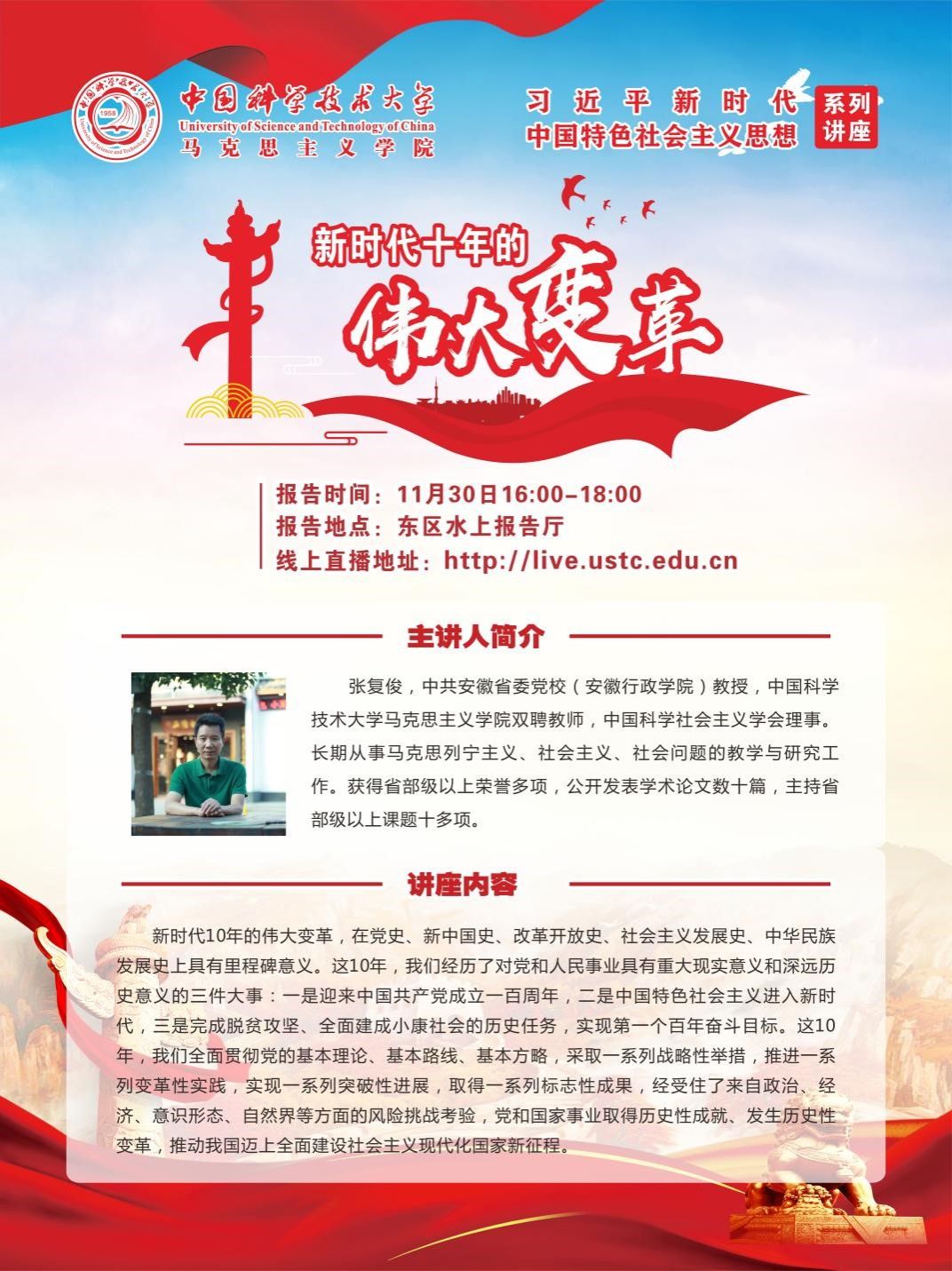 关于“习近平新时代中国特色社会主义思想”系列讲座之张复俊教授报告会的通知